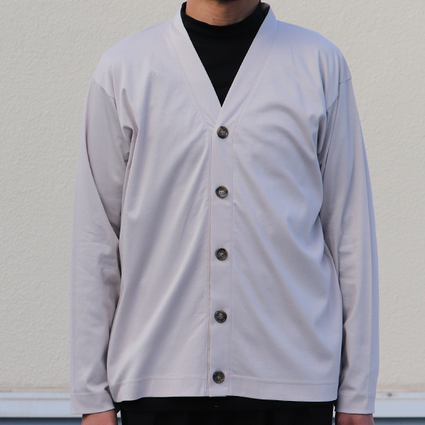 自然な光沢感でなめらかで上品な表情があり、ファッション性と機能性を兼ね備えたドレスカーディガンです。