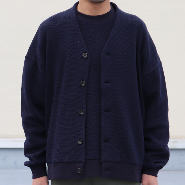 着心地抜群なカーディガンローゲージストレッチ カノコダブルフェイス(15オンス)カーディガン