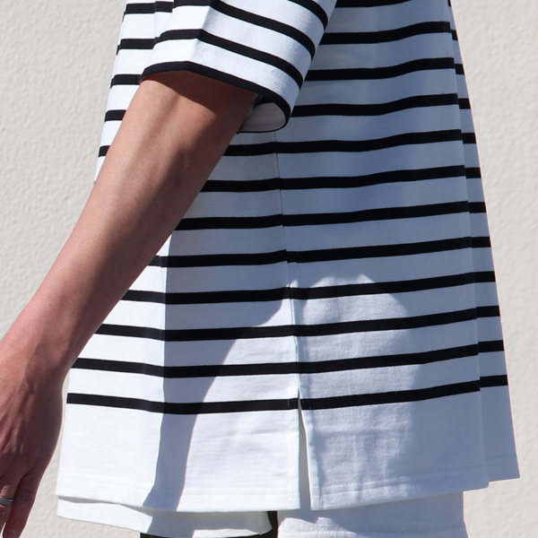 首元はボートネック仕様でスッキリとした印象があり、爽やかに着こなして頂けます。