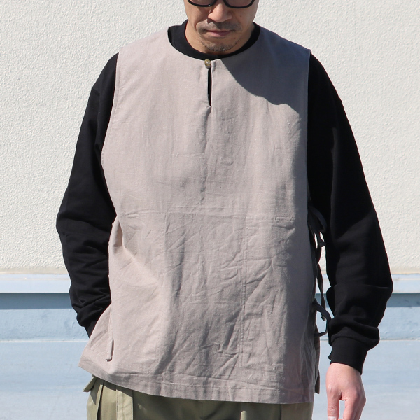 綿麻ビンテージソフトキャンバス キーネック メディカルベスト