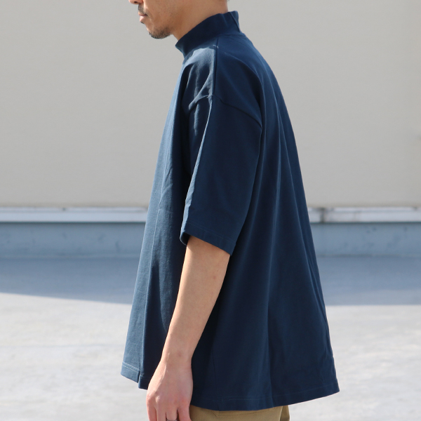 首回りのディテールはモックネックになっており、首に沿ったシャープな見た目が、カジュアルなアイテムなのに上品な印象を打ち出します。