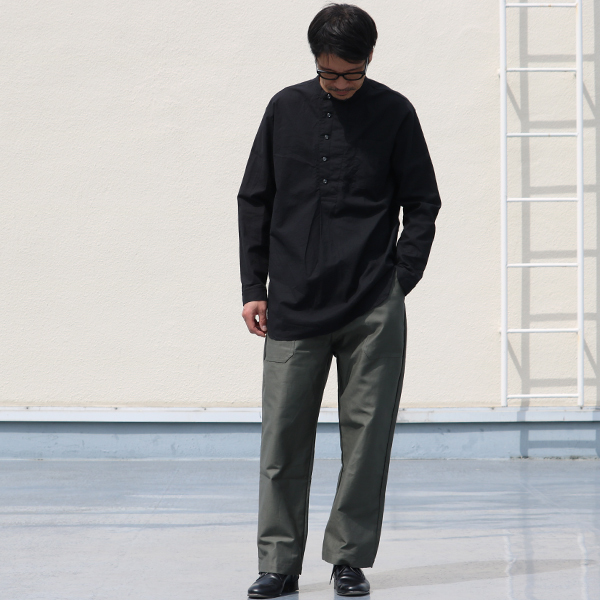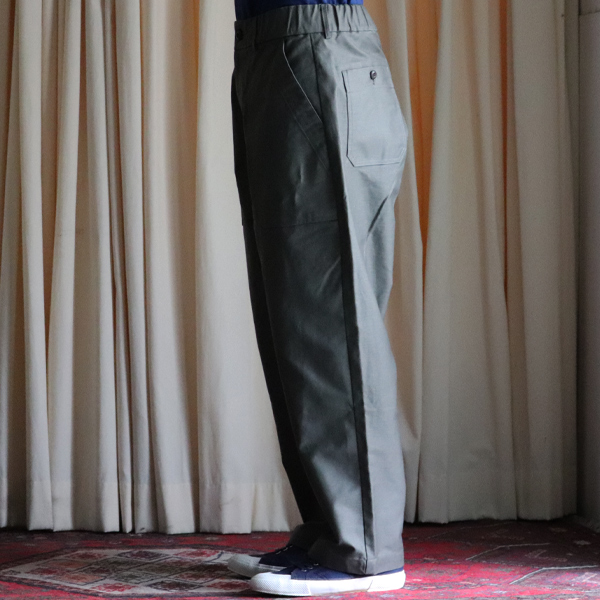 グリストーン綿ナイロンギャバで登場したイージーベイカーパンツで、大好評を頂いたのが記憶に新しいですが、ベイカーパンツといえば、バックサテン。それをグリストーンW加工で仕上げたとくれば、もう言うことなしの無双状態ではないでしょうか。
