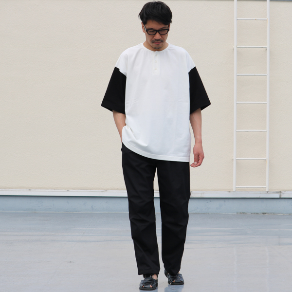 フロントの首元も3つボタンのヘンリーネックになっており、シンプルなカットソーでありながら、普通のTシャツとは一線を画す仕様も嬉しいポイントです。