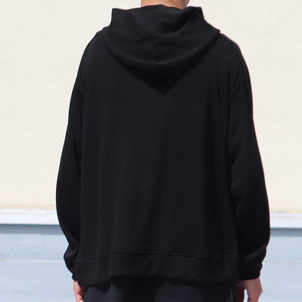 ボリューム感と軽量感を併せ持ったジャージー素材を使用しており、アウターから見せるフードをポイントに、ブルゾンやコートのインナーとしてもおすすめです。