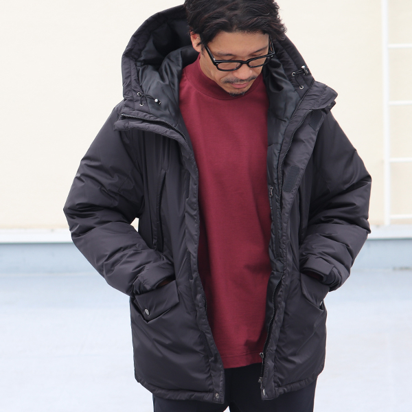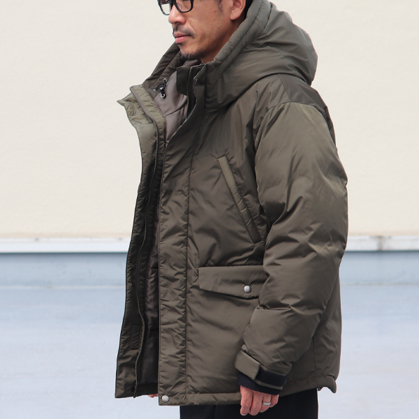 ダウンたっぷりでボリュームがありながらも、直線的なシルエットでスッキリとした雰囲気でお召しいただけます。
