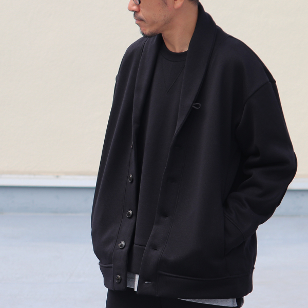 そのセーターフリース素材より、ショールカラーカーディガンジャケットの登場です。