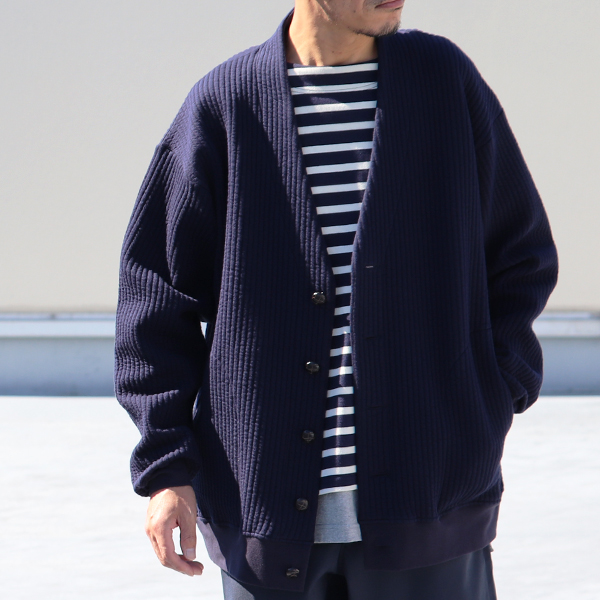 「尾州」コットンキルト くるみボタン 3XL カーディガン【MADE IN JAPAN】『日本製』【送料無料】 / Upscape Audience [AUD7146-NAVY]
