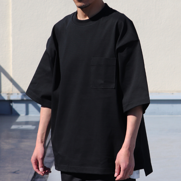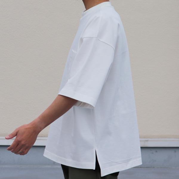 ベーシックなポケTeeに、両サイドにスリットの入ったAラインシルエットになります。