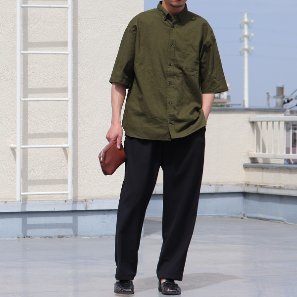 NEWスタンダード・シャツ綿麻ワッシャーキャンバス ボタンダウン ボクシーAライン ハーフスリーブシャツ