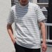 落ち着いた色合いのボーダーと、すっきりとしたスタイルで夏でもだらし無くならない装いを可能にする1枚です。