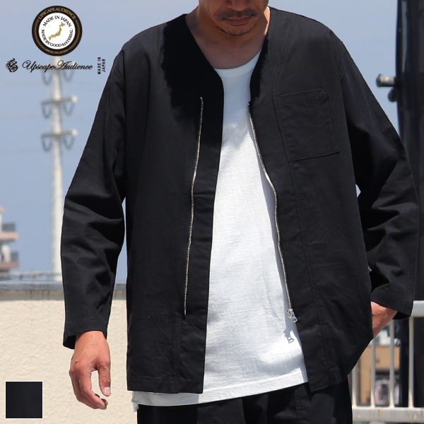 ソフトリネンキャンバス ARMY ZIP 9分袖 ジャケット『日本製』/ Upscape Audience [AUD2934-BLACK]