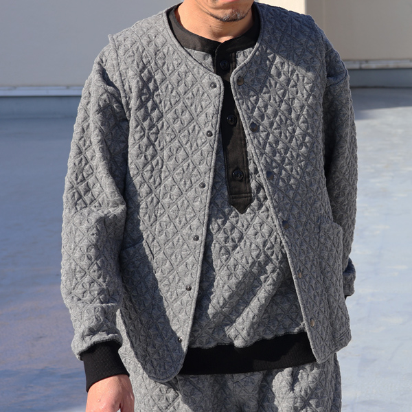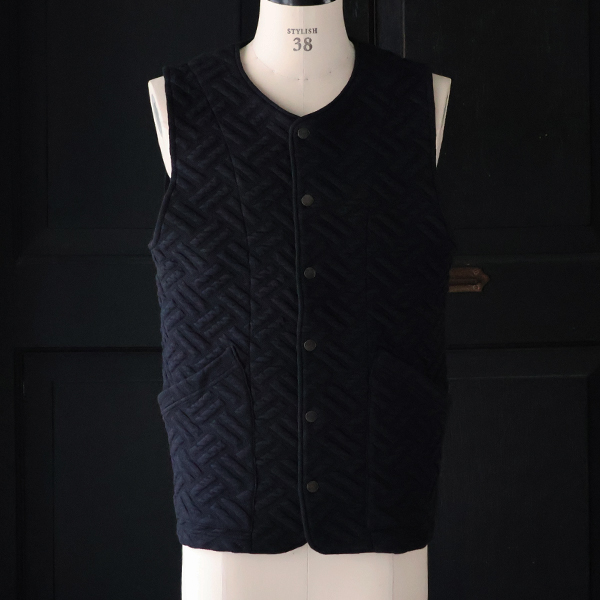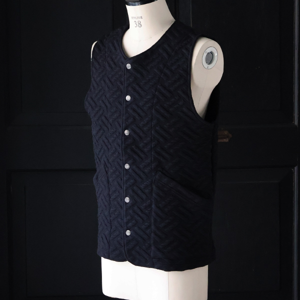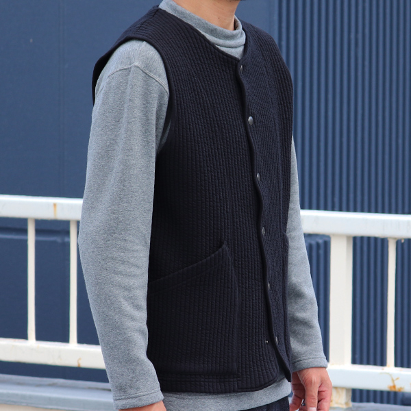 「尾州」コットンキルト ノーカラースナップベスト【MADE IN JAPAN】『日本製』 / Upscape Audience [AUD7331]