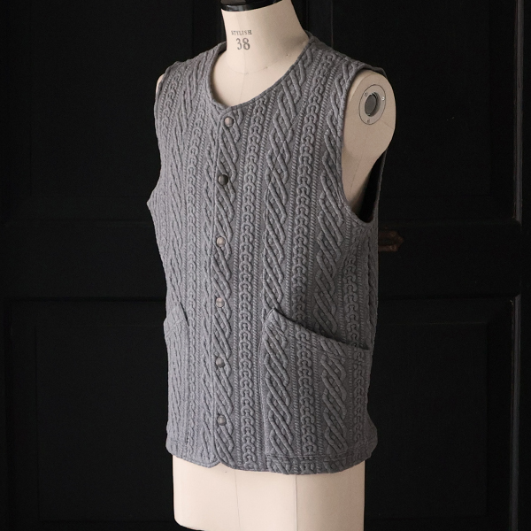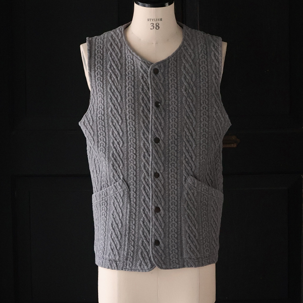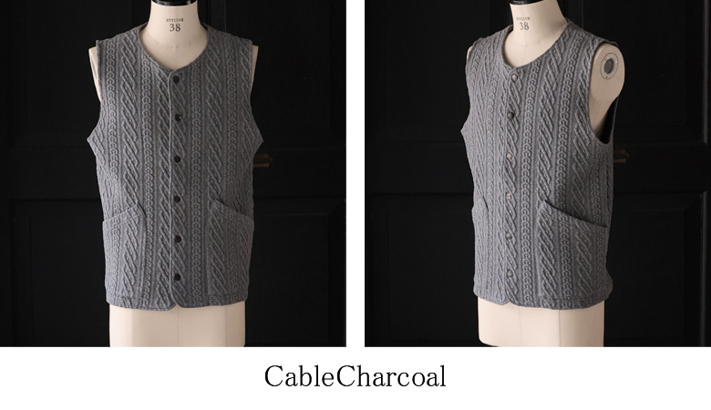 そして、今回新たに加わったケーブル柄はぼこぼこと立体的に細かなニットの網目を表現しています。ニットよりも手軽に着られる、丈夫でロングシーズンお楽しみいただける素材です。