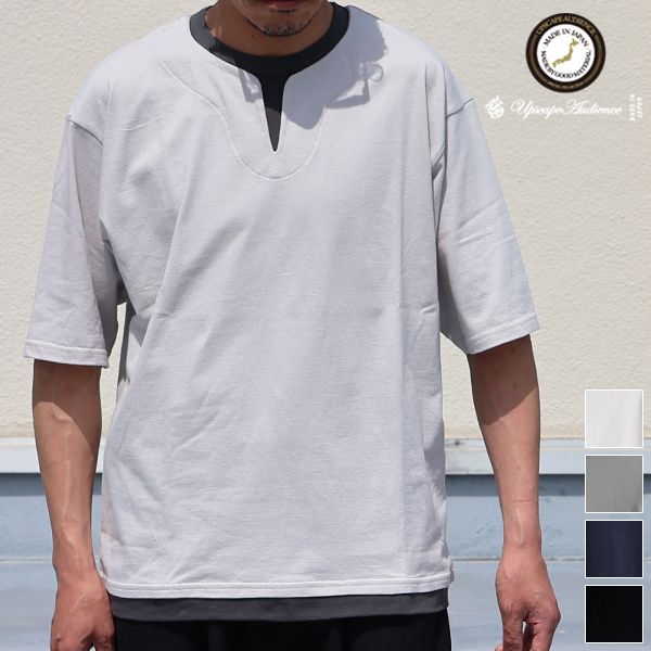 「丹後」度詰天竺 (6オンス) フェイクレイヤード キーネック ハーフスリーブ Tシャツ【MADE IN JAPAN】『日本製』/ Upscape Audience [AUD6535]