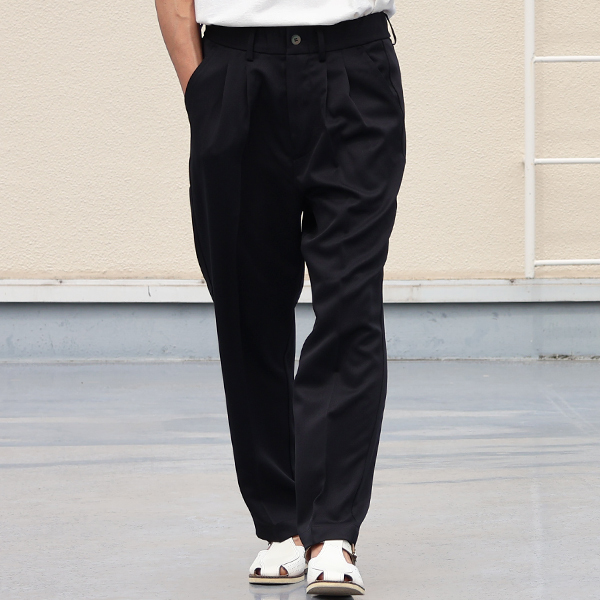 程よくゆったりとした腰回りですが、テーパードがしっかり効いて、ワイドパンツが苦手という方にもオススメのシルエットです。
