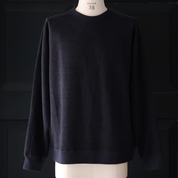 ウールビッグワッフル クルーネック ニットソー【MADE IN JAPAN】『日本製』 / Upscape Audience [AUD6570]