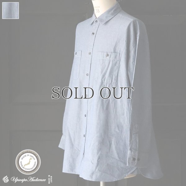 播州織 ダンガリー レギュラーカラー ボクシーAライン 長袖ワークシャツ【MADE IN JAPAN】『日本製』/ Upscape Audience [AUD6581-NAVY]