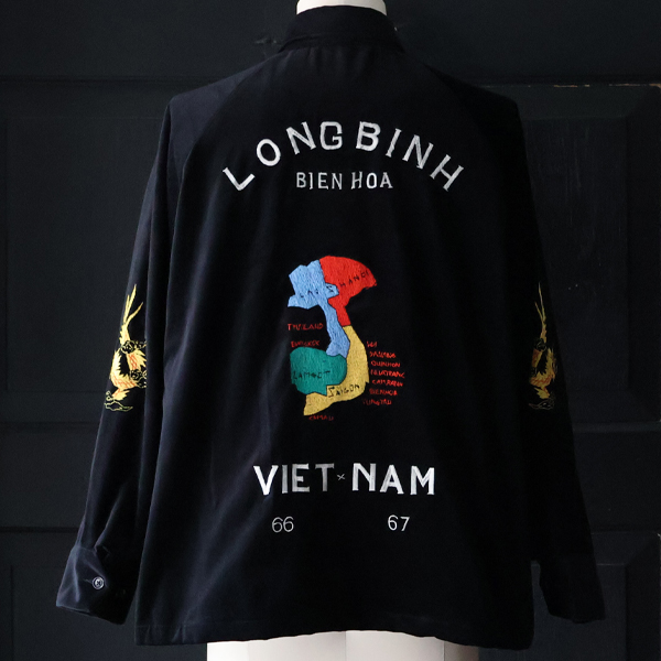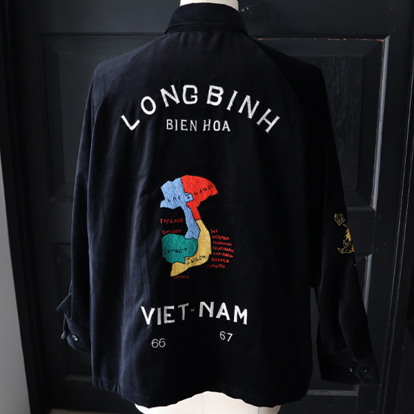 刺繍はアーカイブを参考にマットな太番手の糸を使い、再現しており、バックのLONGBINH刺繍は、US ARMYの基地で司令部として機能した地名です。