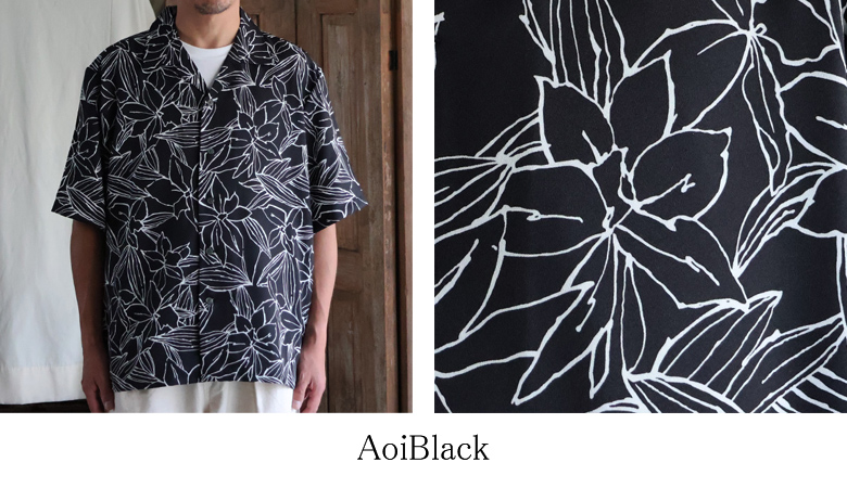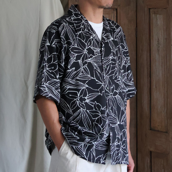「丹後」 ライトアムンゼン(梨地) 捺染 モノトーンフラワー “マシンプリント” オープンカラー ハーフスリーブシャツ【MADE IN JAPAN】『日本製』/ Upscape Audience [AUD6708]