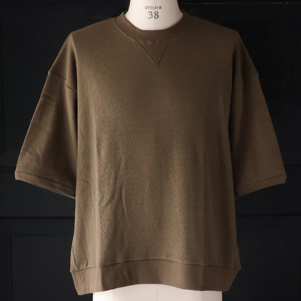 サーマル生地「泉州」ハニカムサマーニット(7.45オンス)ガゼットクルーネック ハーフスリーブ スウェットライクTシャツ