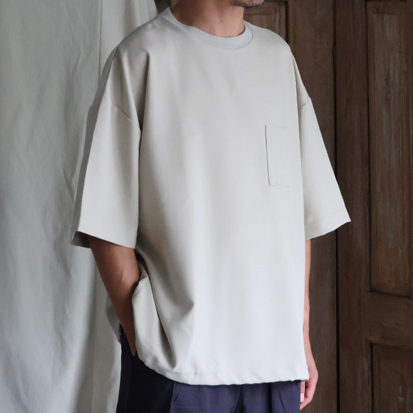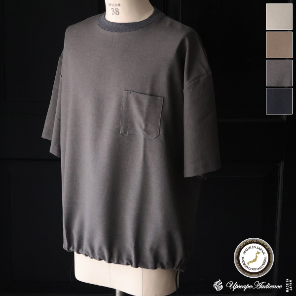 Naturemier TM (ナチュレミア) TECH リネンライク トロワッシャー ドローコードバルーン クルーネック ハーフスリーブシャツ【MADE IN JAPAN】『日本製』/ Upscape Audience [AUD6615]