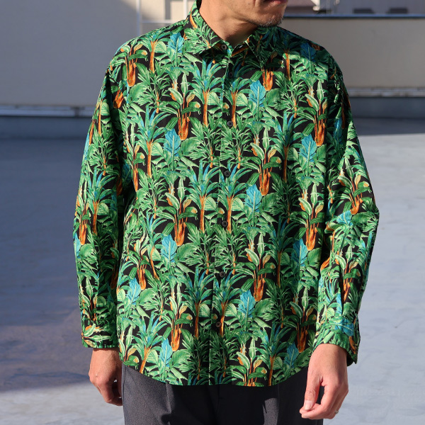 総柄シャツにて、柄の雰囲気もどこかノスタルジックな感じもあり、若い世代から大人の世代まで愛される柄となっております。
