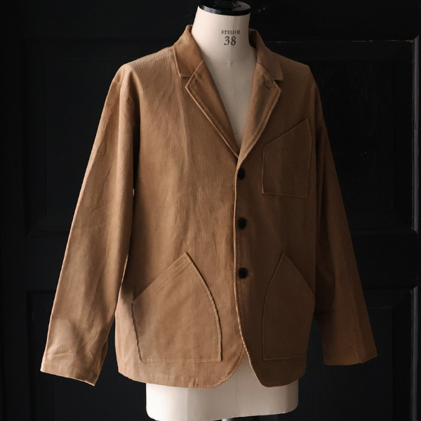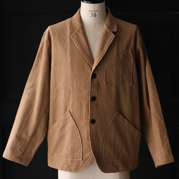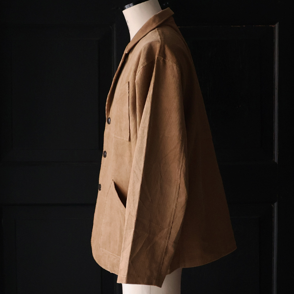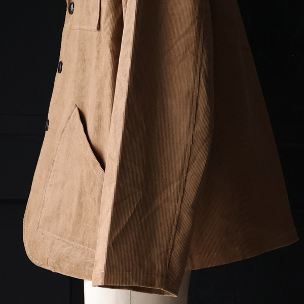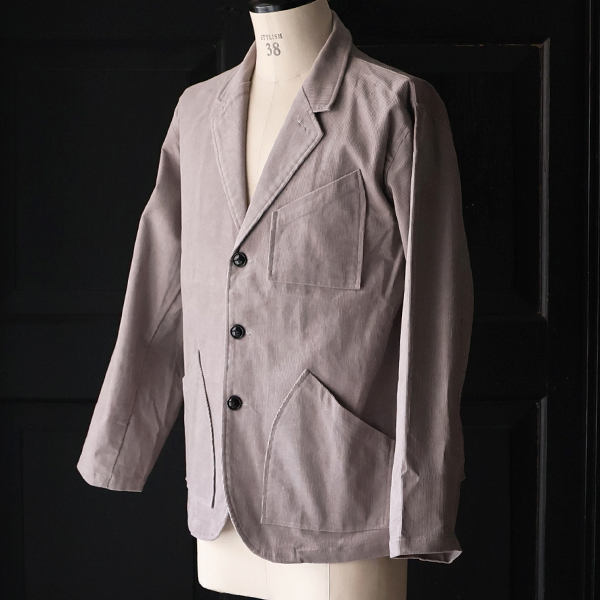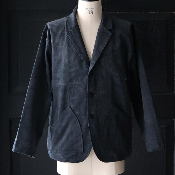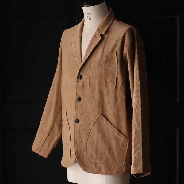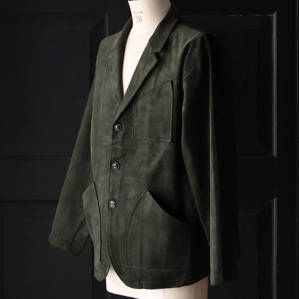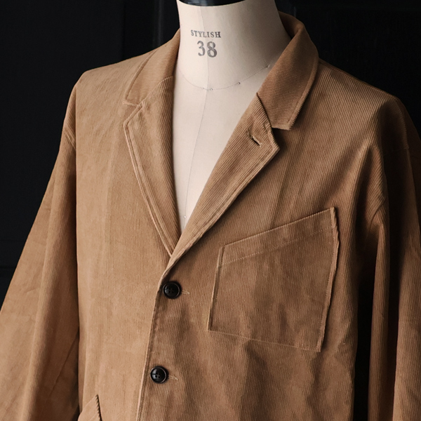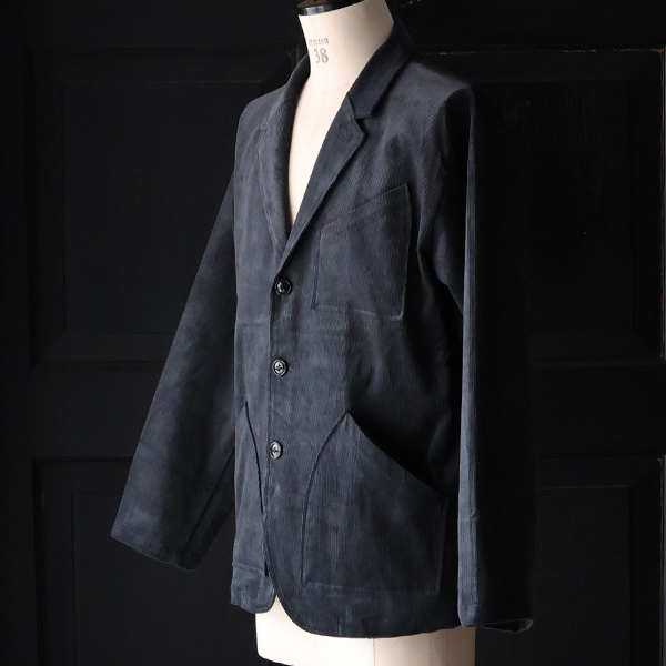 14Wの中太コールの畝が上品で大人っぽい印象のコットンコーディロイを使用した、3ボタンのロガージャケットです。