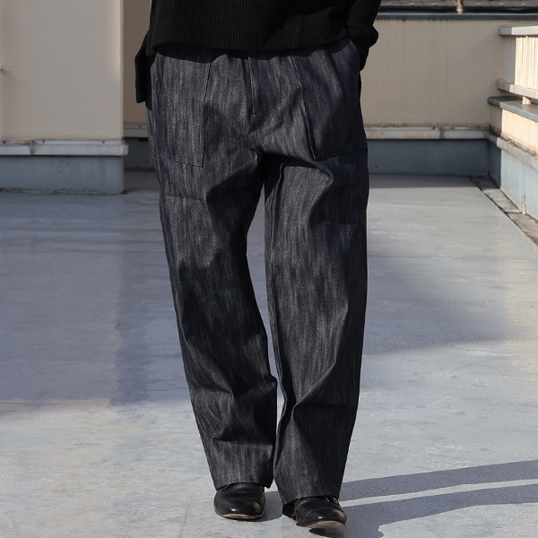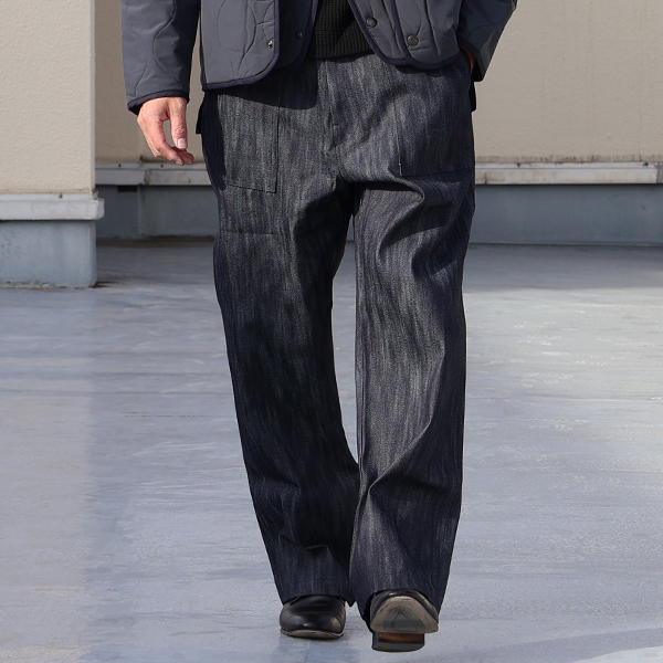 ミリタリーボトムスの代表作「備後」 11オンス セルヴィッチ 赤耳デニム ベイカーワイド イージーパンツ