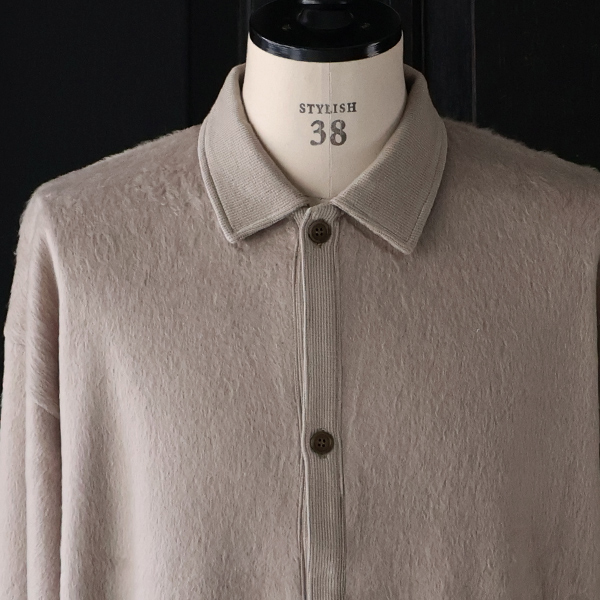 ニットソーシリーズモヘアライク ウールシャギー ニットソー ポロカーディガン