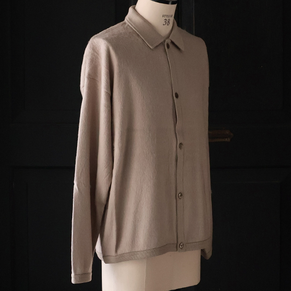 バルキーな表情感が秋冬に適度なニットソーポロカーディガン。