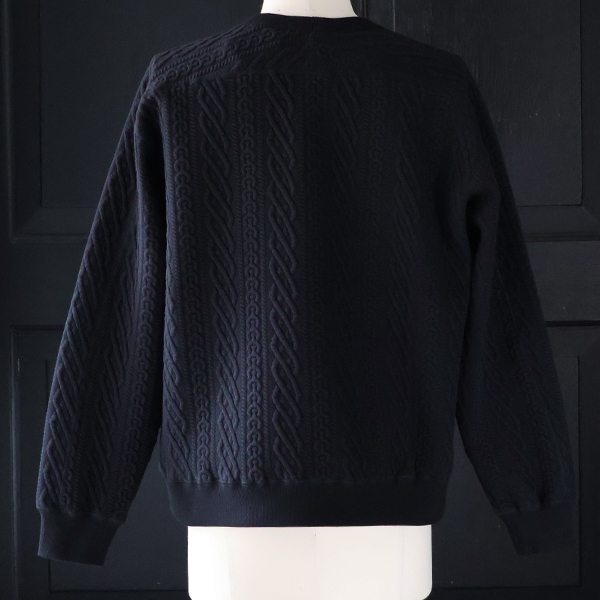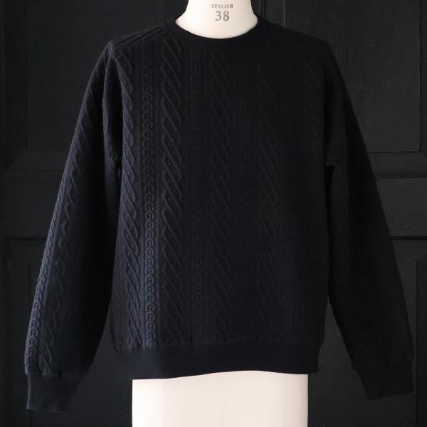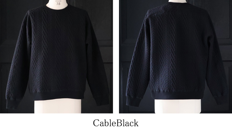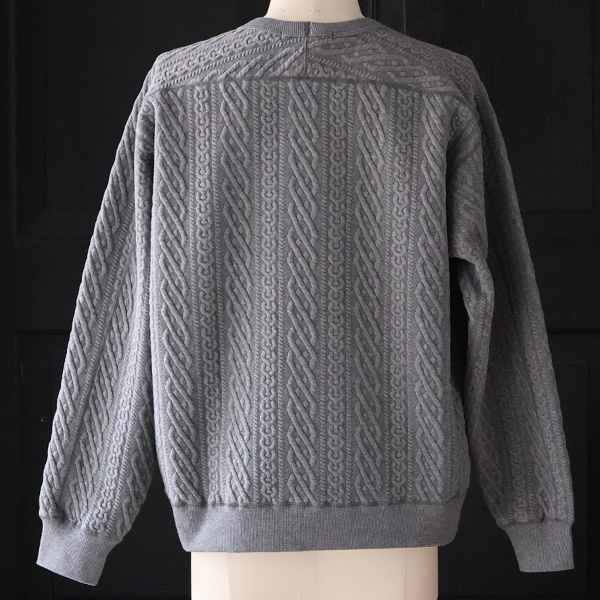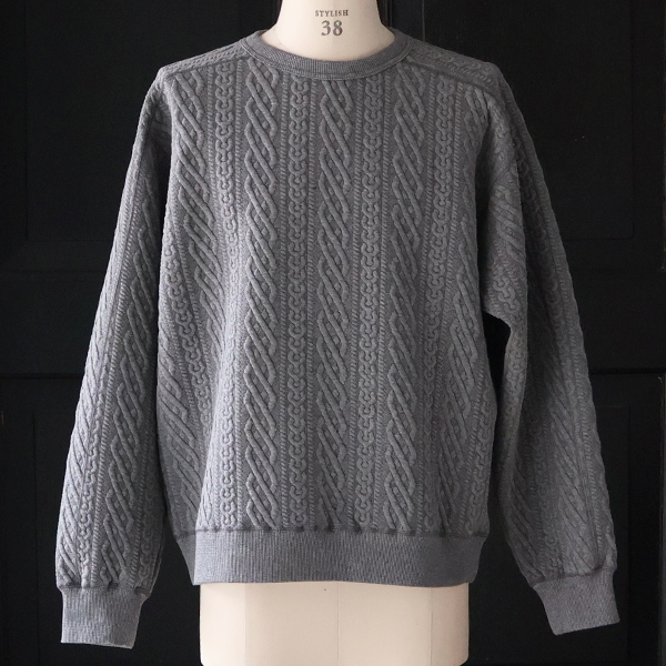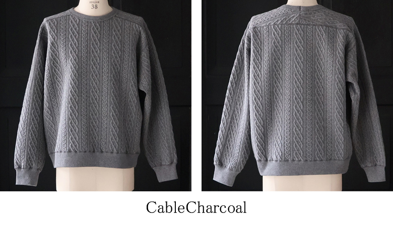 ケーブル柄は、ぼこぼこと立体的に細かなニットの網目を表現しています。