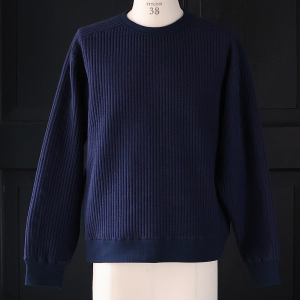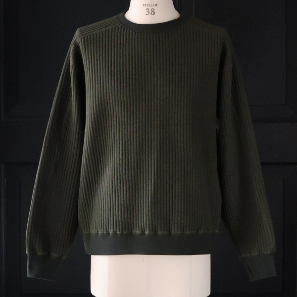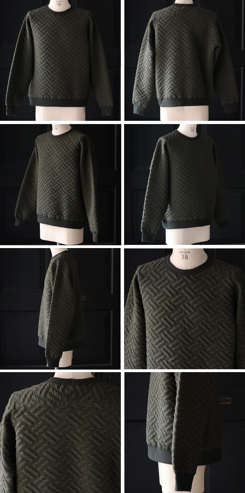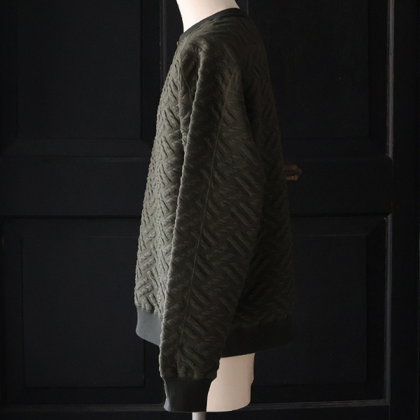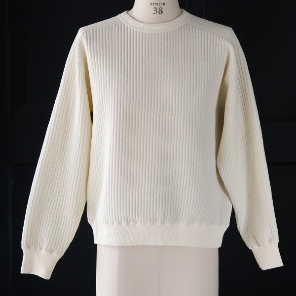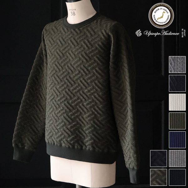 「尾州」コットンキルト ミリタリースリーブ クルーネック【MADE IN JAPAN】『日本製』 / Upscape Audience [AUD6647]