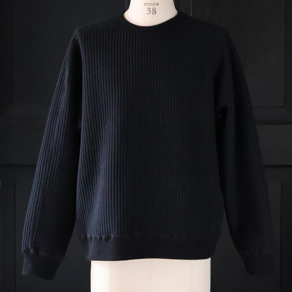 細かなニットの網目を立体的に表現し暖かみのある生地に仕上がっています。
