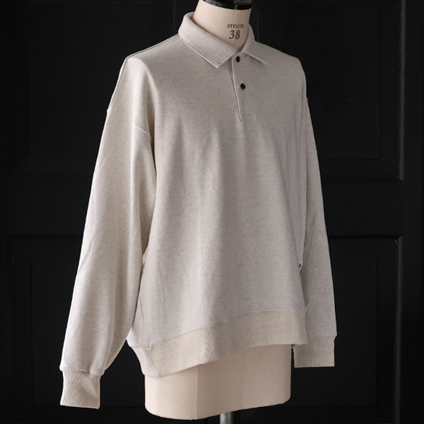 裾タック(後身頃)を2箇所施しており、バルーンような立体的なシルエットを生み出しているポロシャツです。