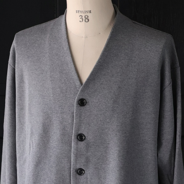 裾タック(後身頃)を2箇所施しており、バルーンような立体的なシルエットを生み出しているVネックカーディガンです。