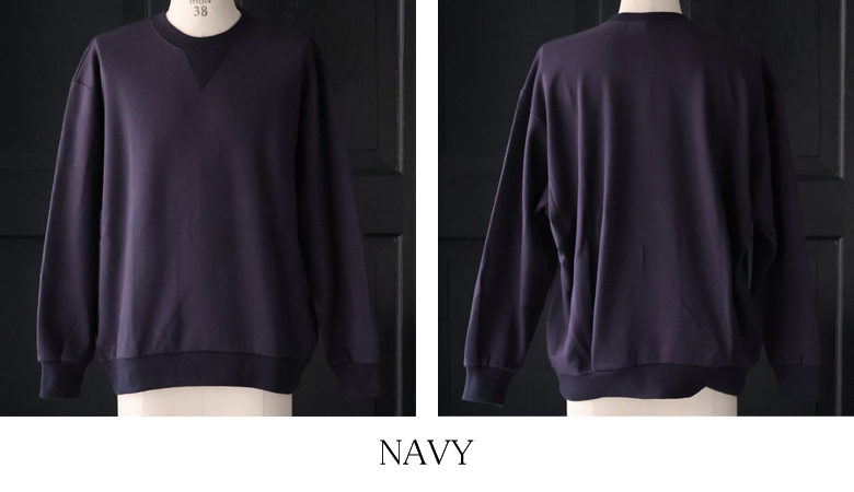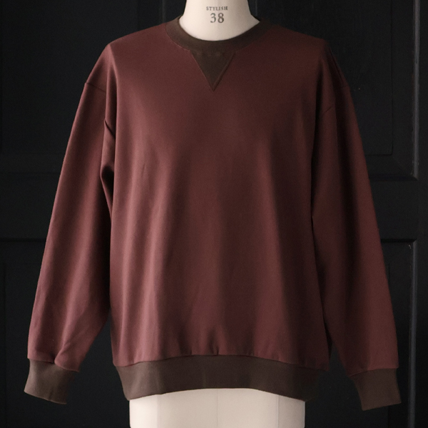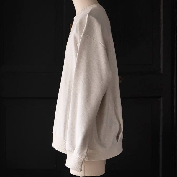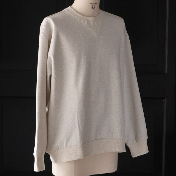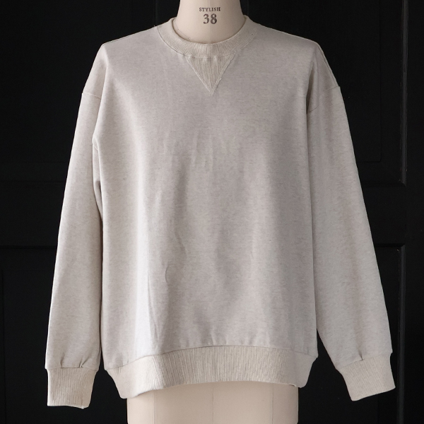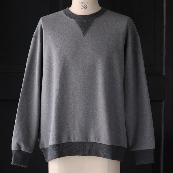 裾タック(後身頃)を2箇所施しており、バルーンような立体的シルエットを生み出しているVガゼットスウェットです。
