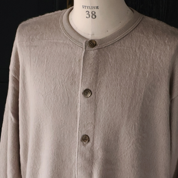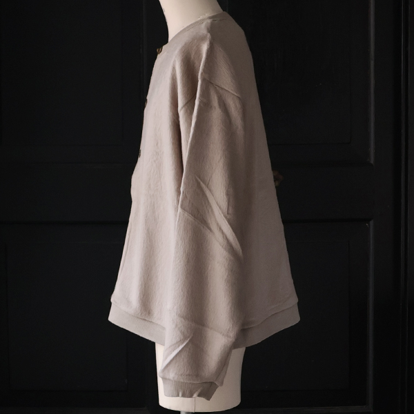 モヘアカーディガンのような感覚で着て頂けるニットソーです。