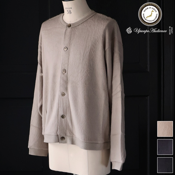 モヘアライク ウールシャギー ニットソー クルーネック カーディガン【MADE IN JAPAN】『日本製』 / Upscape Audience [AUD7337]