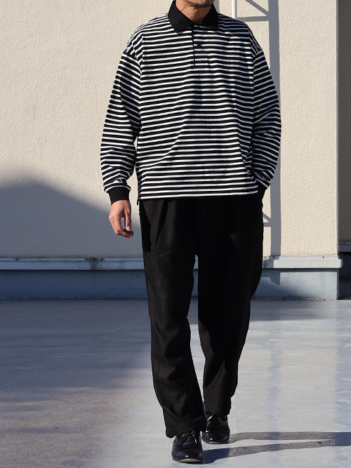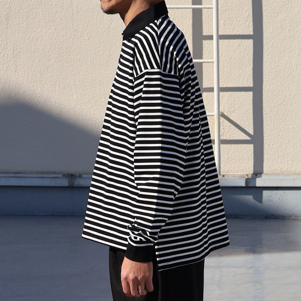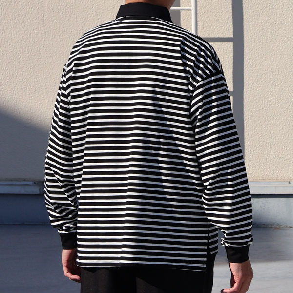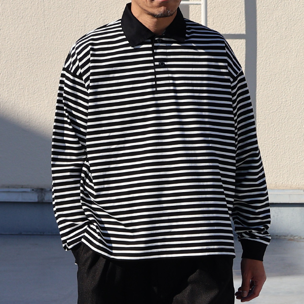 ラグビーポロ Tee透湿・UVカット「多機能COTTON」 引揃ハイ ゲージ天竺 & ボーダー (7オンス) ラグビーポロ 長袖 Tシャツ