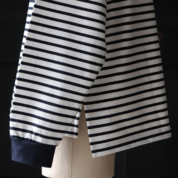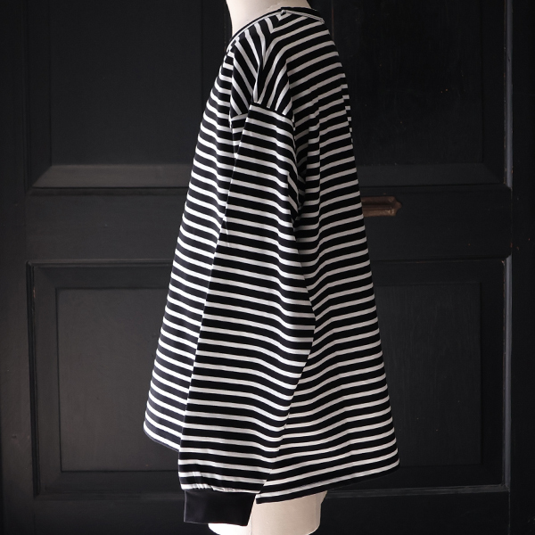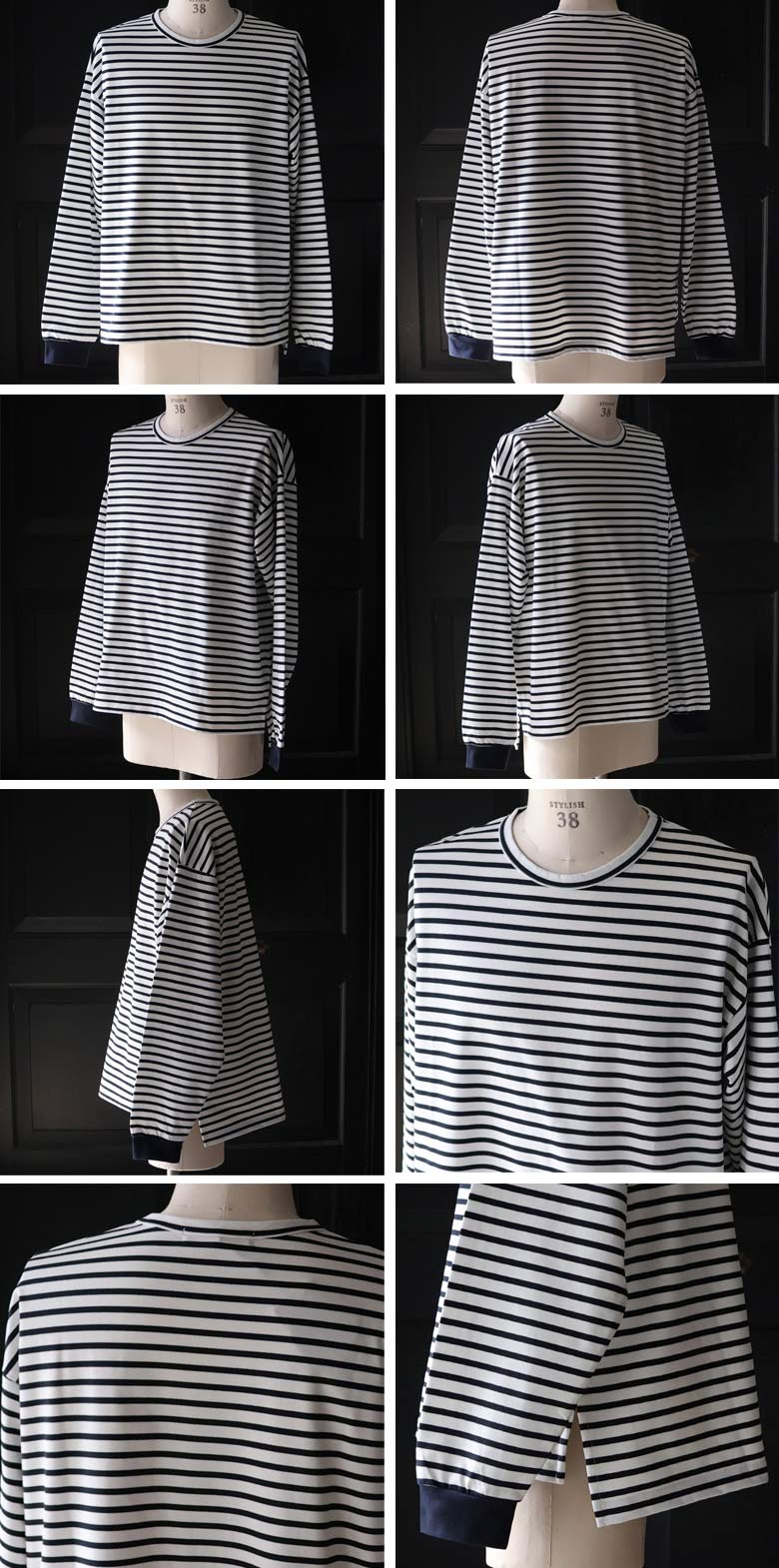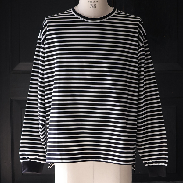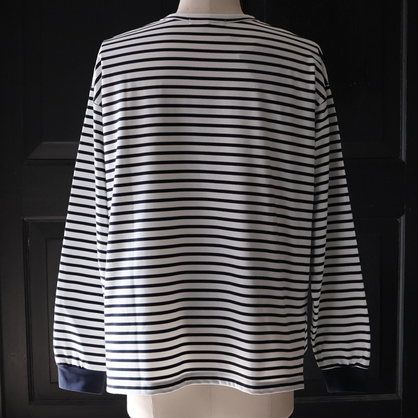 透湿・UVカット「多機能COTTON」 引揃ハイゲージ天竺 & ボーダー (7オンス) クルーネック 長袖 Tシャツ【MADE IN JAPAN】『日本製』/ Upscape Audience [AUD6668]