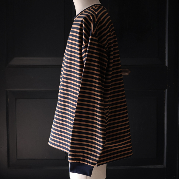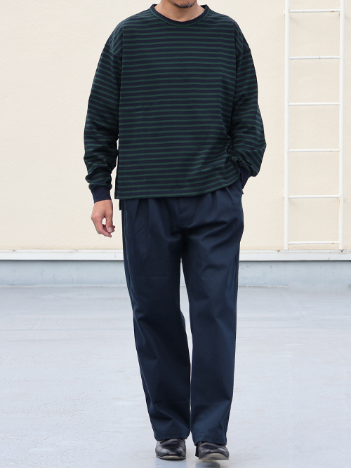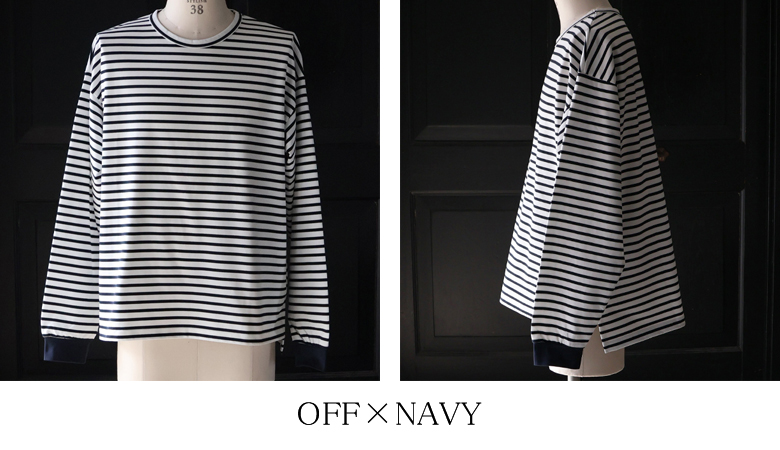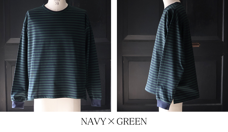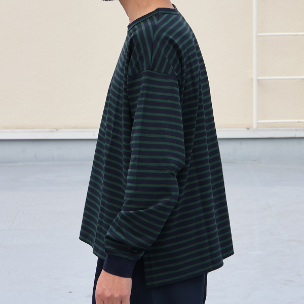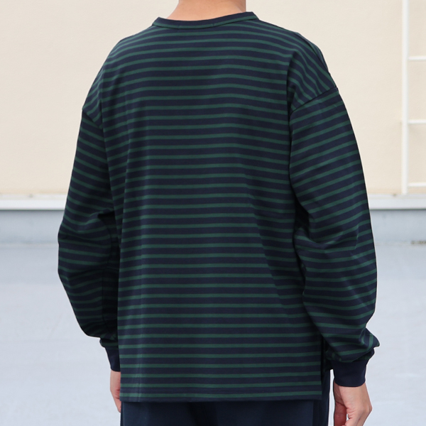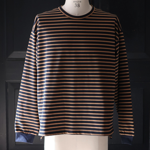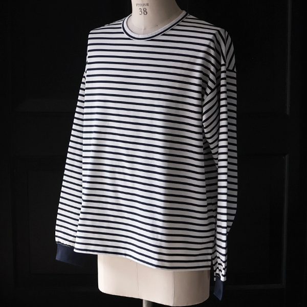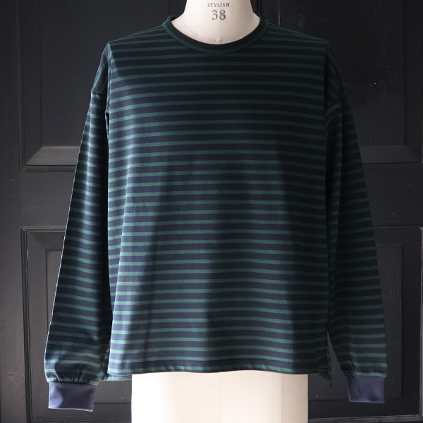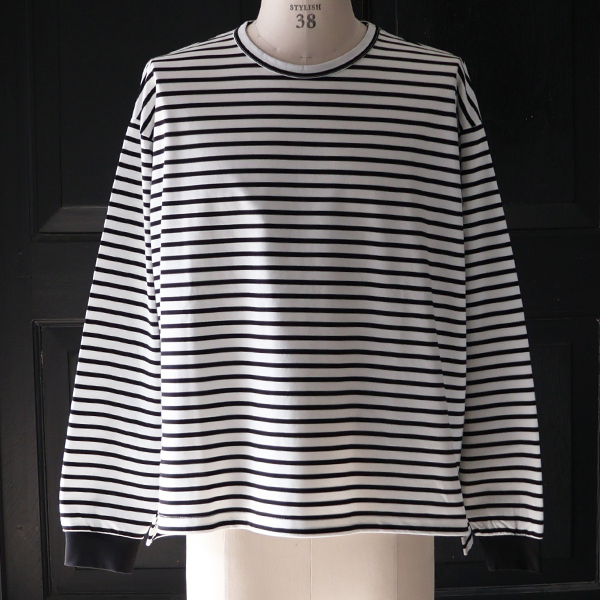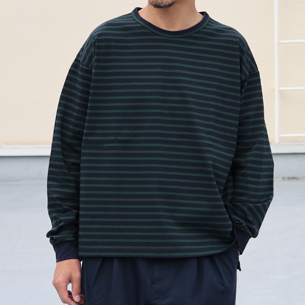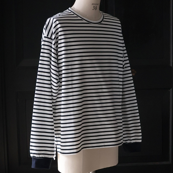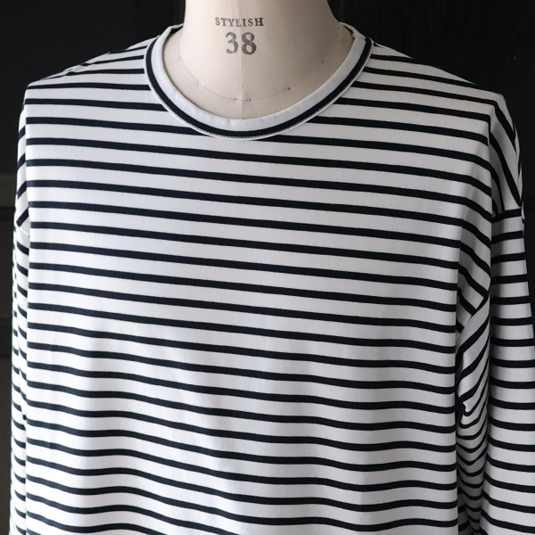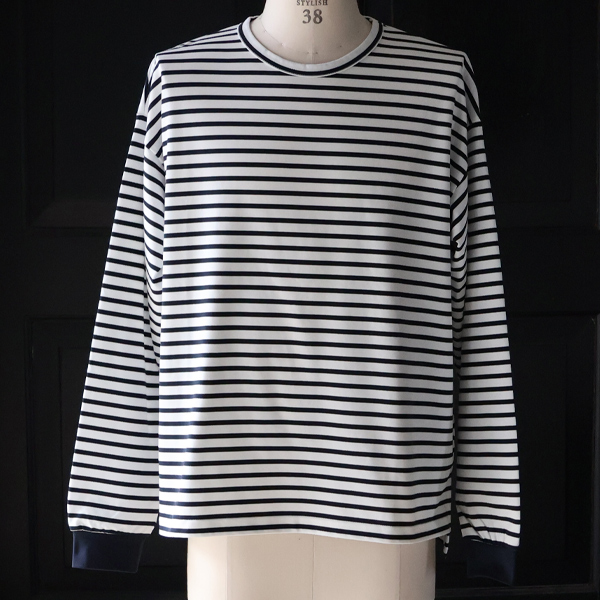 クルーネック Tee透湿・UVカット「多機能COTTON」 引揃ハイ ゲージ天竺 & ボーダー (7オンス) クルーネック 長袖 Tシャツ