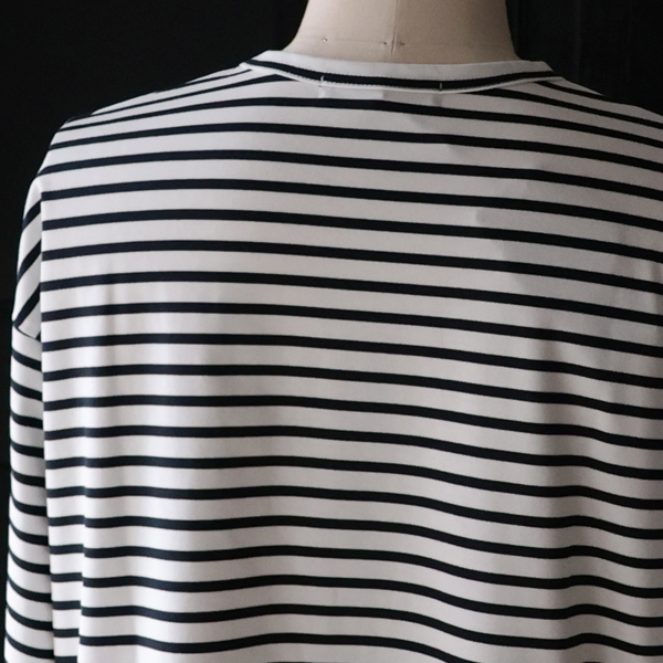 透け感もなく、ソフトで膨らみのある肌触り、型崩れしにくい安定性、そしてデイリーに着用できる機能性を兼ね備えた天竺です。