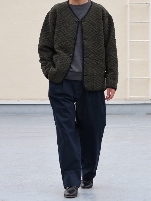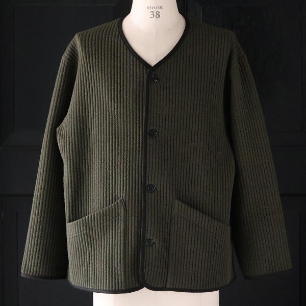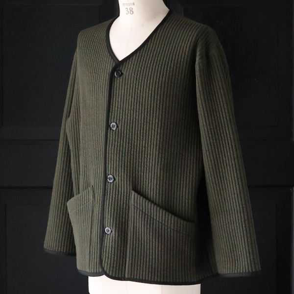 ライニングカーディガンをモチーフに作られたキルティングカーディガンです。