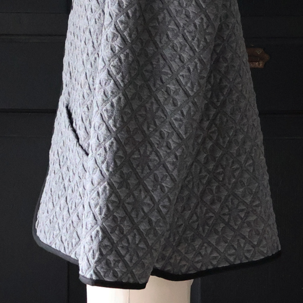 そして、今回新たに加わったケーブル柄はぼこぼこと立体的に細かなニットの網目を表現しています。ニットよりも手軽に着られる、丈夫でロングシーズンお楽しみいただける素材です。