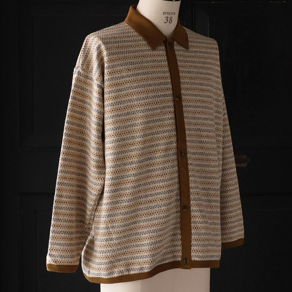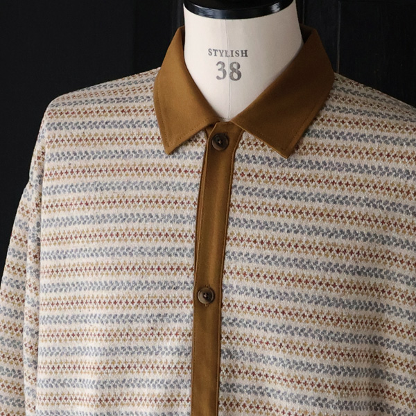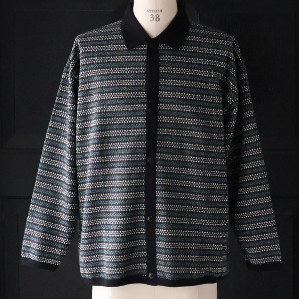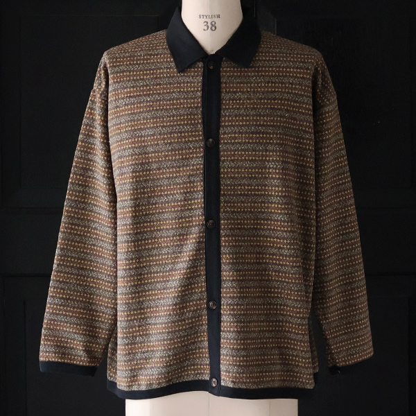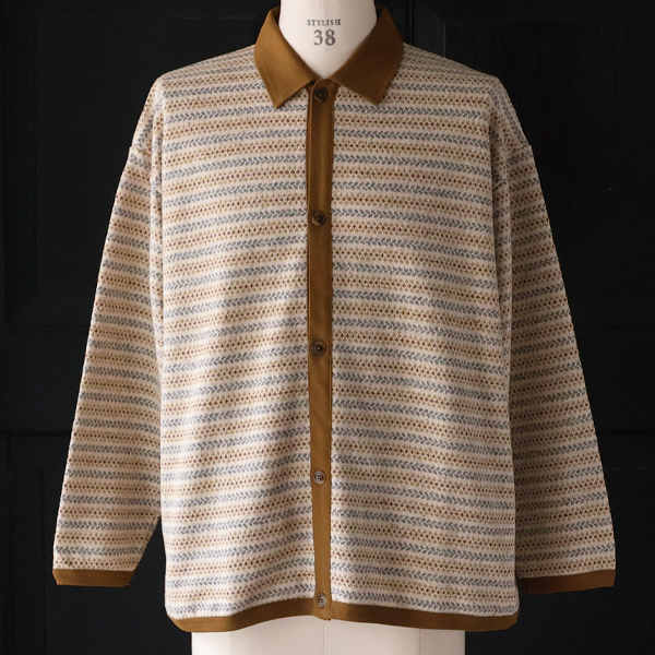 ジャガードニットソー「尾州」JAZZネップ マルチカラー ジャガード ポロニットソー カーディガン
