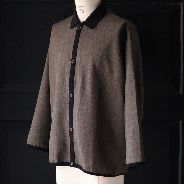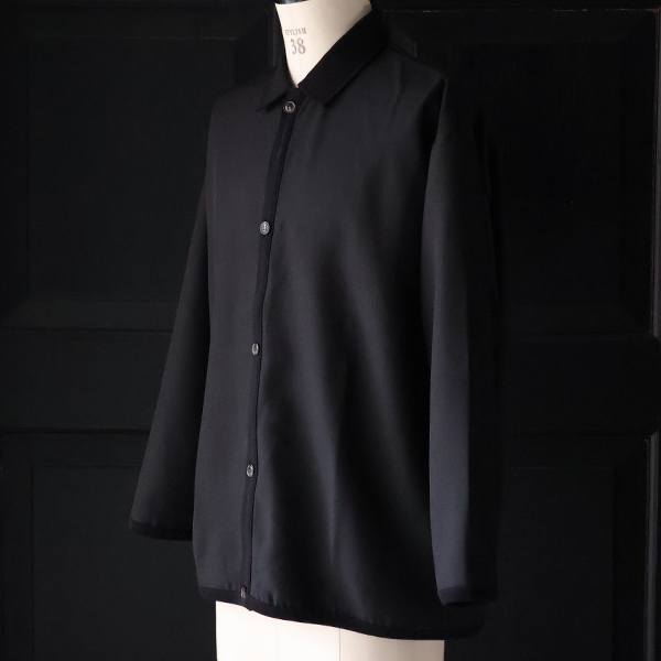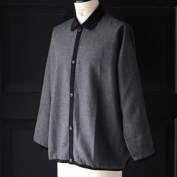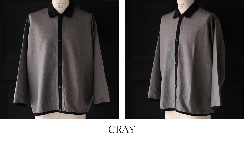 ポロシャツのような襟とボタンの前開きデザインが、ボタンを閉じても、開いても様になるアイテムです。