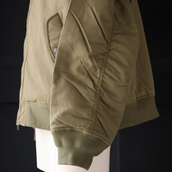 ヴィンテージのMA-1フライトジャケットをイメージし、オーセンティックなディティールを残しつつ、タウンユースで着用しやすいよう、極力シンプルなデザイン、サイズ感にアップデートしています。