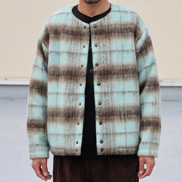 ECOLANA(エコラーナ) シャギーチェック ノーカラー スナップ ジャケット【MADE IN JAPAN】『日本製』【送料無料】 / Upscape Audience [AUD7343]