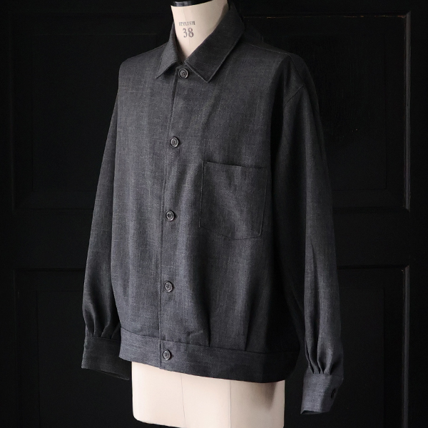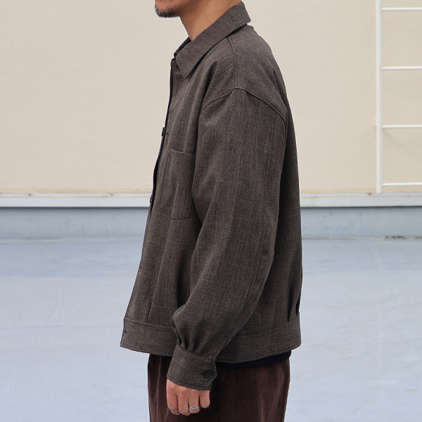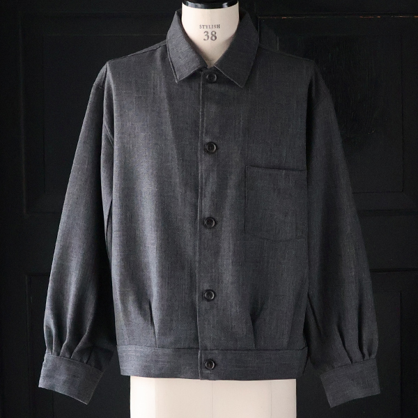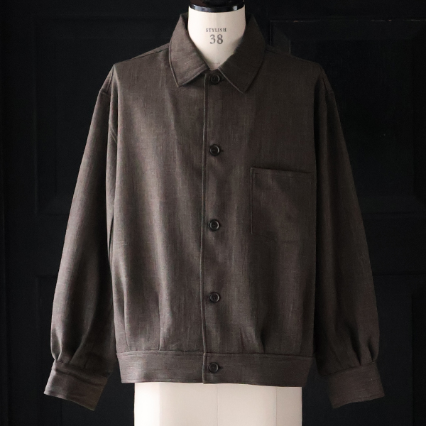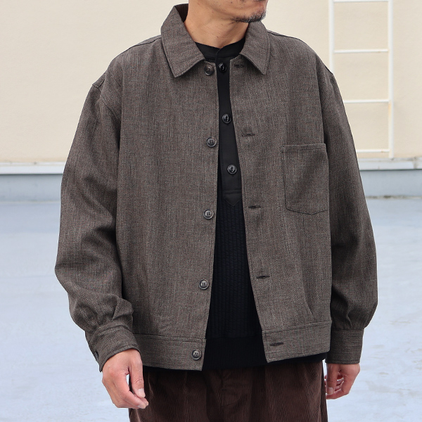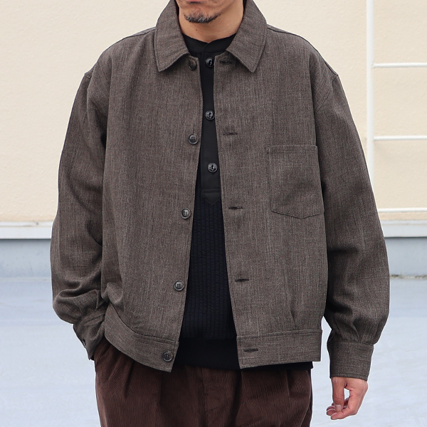 シャンブレー感ある表情が高級感を演出するトラッカージャケットです。