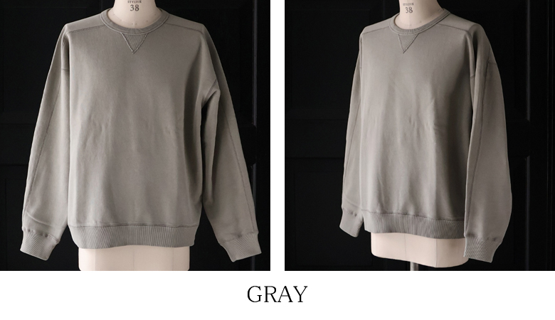 綿100%のピグメント加工でヴィンテージスウェット調に後加工をで色出しをしています。